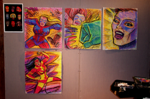 and these are the first sketches–a few warm-ups, just to get a groove going, get the feel of the place. Pastel and charcoal-nothing too heavy–just for fun: