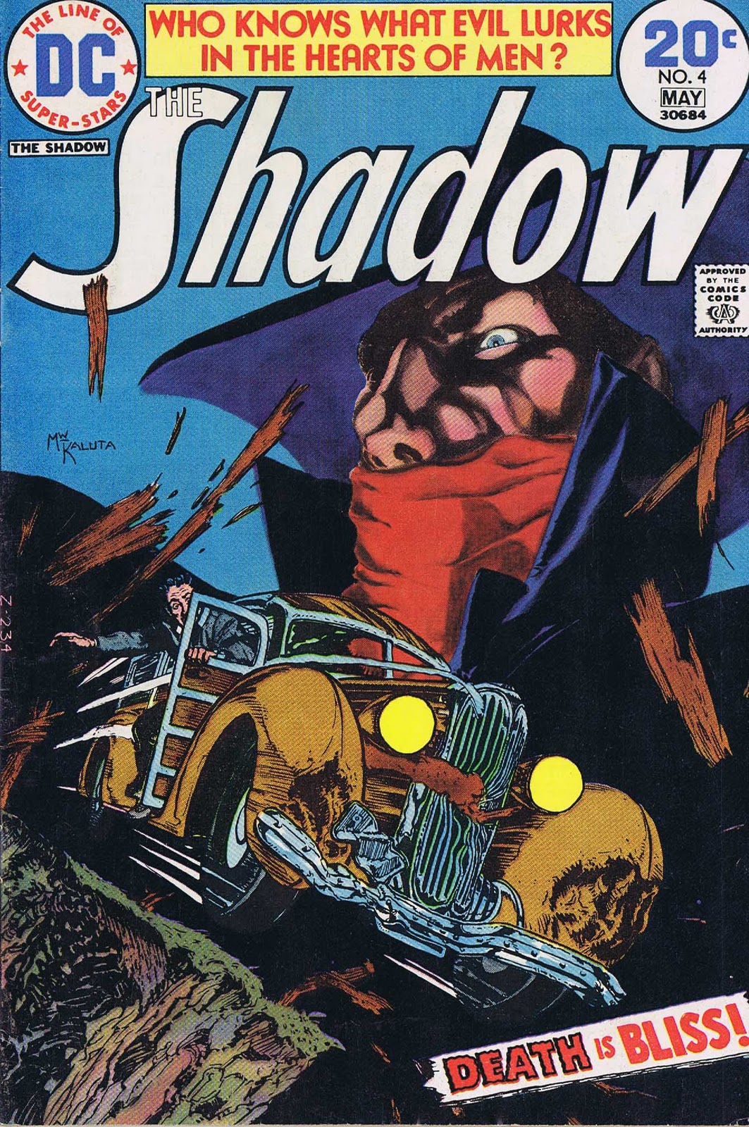 I used to read these comics when they came out. A few weeks ago I was in a used bookstore in LA and saw the same comic you have pictured, “Death is Bliss,” which I had purchased when it hit the stands in 1974. Couldn't resist, bought it. At the time, Kaluta's drawing style annoyed a lot of readers because he drew in that pulp style…he framed his panels like the dissolves in '30s movie serials. First time I've come across your blog; I grew up with the work of the artists you write about. They're worth remembering. Jazzy Johnny Romita! James Steranko did some great covers for the paperback reprints thatcame out about the same time. You probably recall the Blue Coal ads that used to play on a lot of the old Shadow radio shows…
