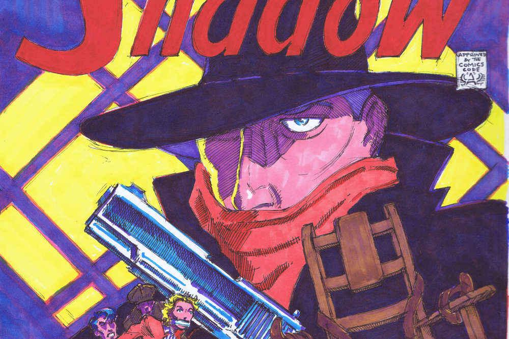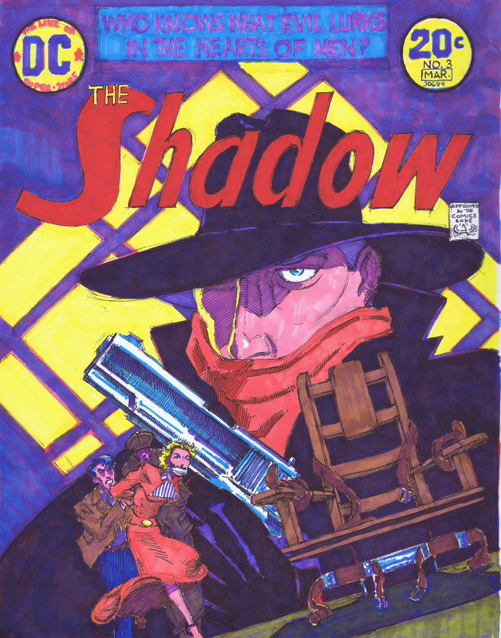 The Shadow no.3-Another great Kaluta cover from the early seventies. This one looks like it’s pen and ink in the foreground and watercolor with an ink wash in the background–but hell if I know. Mine’s all markers. Anyway-great ominous atmosphere in that original! Thanks, Mike!
