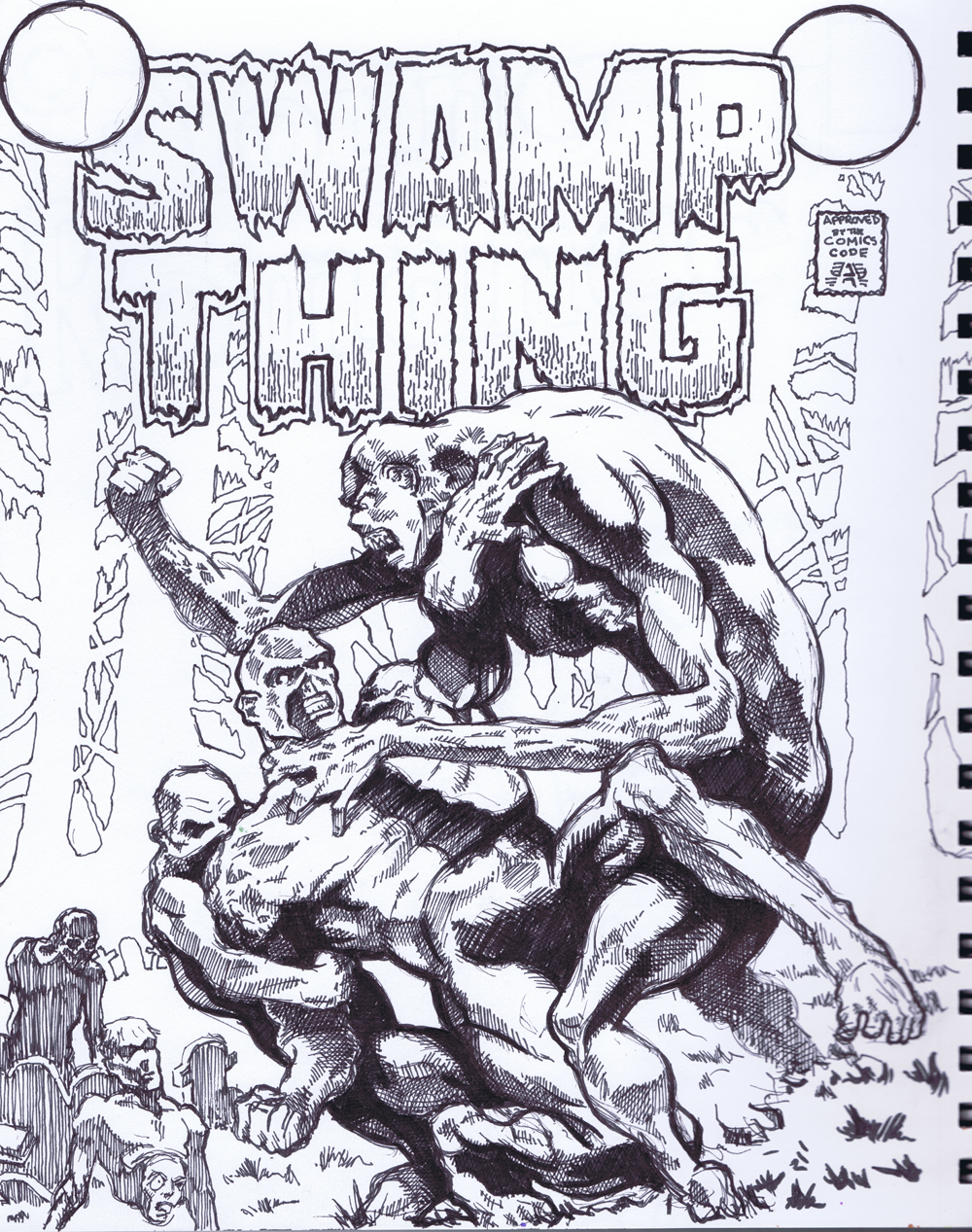 By geoffgcomics Posted on February 23, 2011April 14, 2019 Swamp Thing no.10 Couldn’t just do one Wrightson cover–had to do another, and here ’tis: Swamp Thing no.10. Share this: Click to share on X (Opens in new window) X Click to share on Facebook (Opens in new window) Facebook Like Loading...