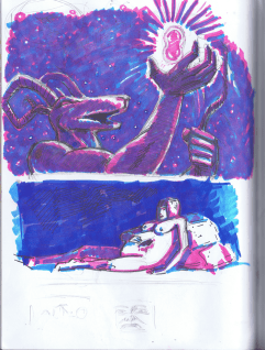 The first, in pen and ink, from his classic “Wash Tubbs & Cap’n Easy”-and the second from “Buz Sawyer”, highlighting Sawyer’s absolute mastery of the now lost art of zip-a-tone.