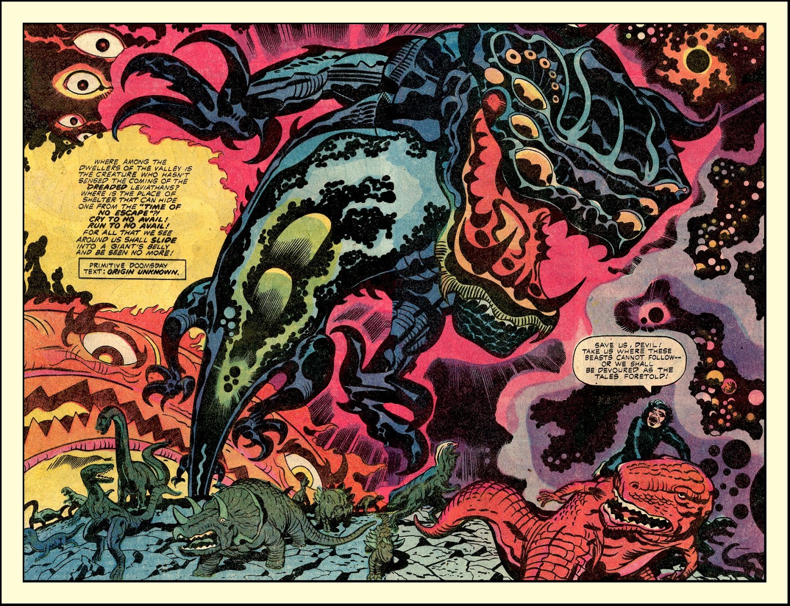 But when we’re discussing comics and cartoonists, whether it’s comic books or comic strips, it’s rare to hear a mention of the role of color on the work.( except, perhaps, in service to some sort of “realism”i.e., in the service to volumetric rendering, as in the work of Alex Ross.) As fans, we often look at those wondrous printed pages by Jack Kirby, particularly those from the late 60’s on, dazzled by Kirby’s graphic power and pop art energy, with nary a word about the role of color in the success of those images.