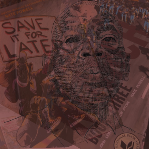 Nate Powell, National Book Award Winner as cartoonist/illustrator of the great Congressman John Lewis’ (with Andrew Aydin) powerful graphic memoir of the Civil Rights Era, “MARCH “ vols. 1, 2 and 3, is here to talk about both that and his latest work, “Save It For Later: Promises, Parenthood and the urgency of Protest” in the Trump and post-Trump eras.
